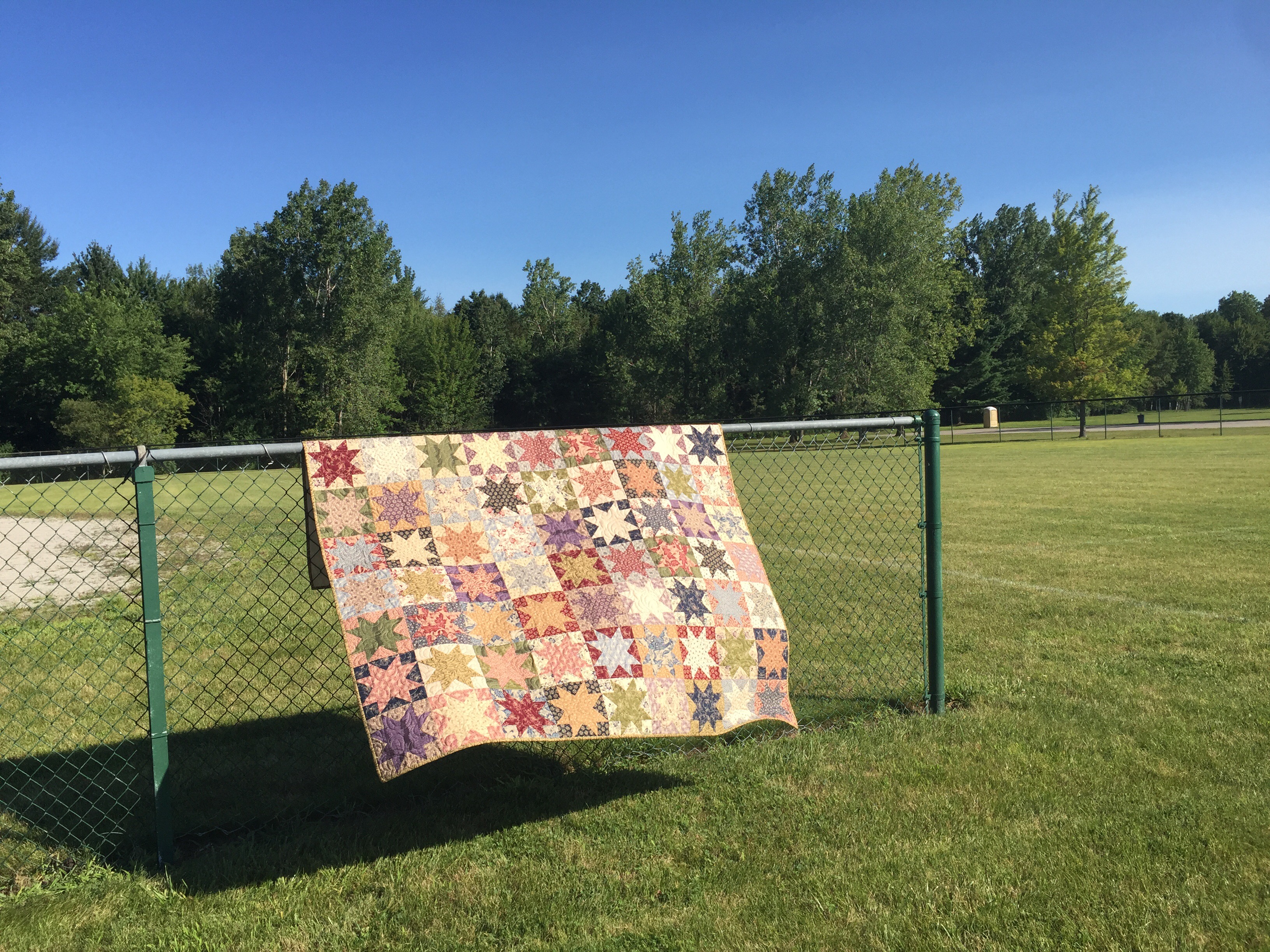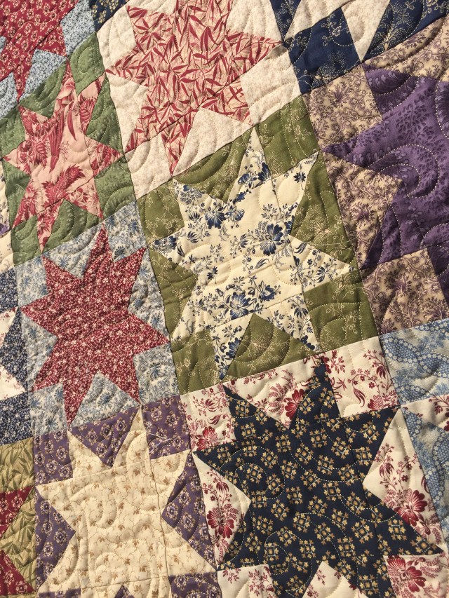 Well worth waiting for this finish – it’s gorgeous. The fabrics really lend themselves well to your traditional star design.