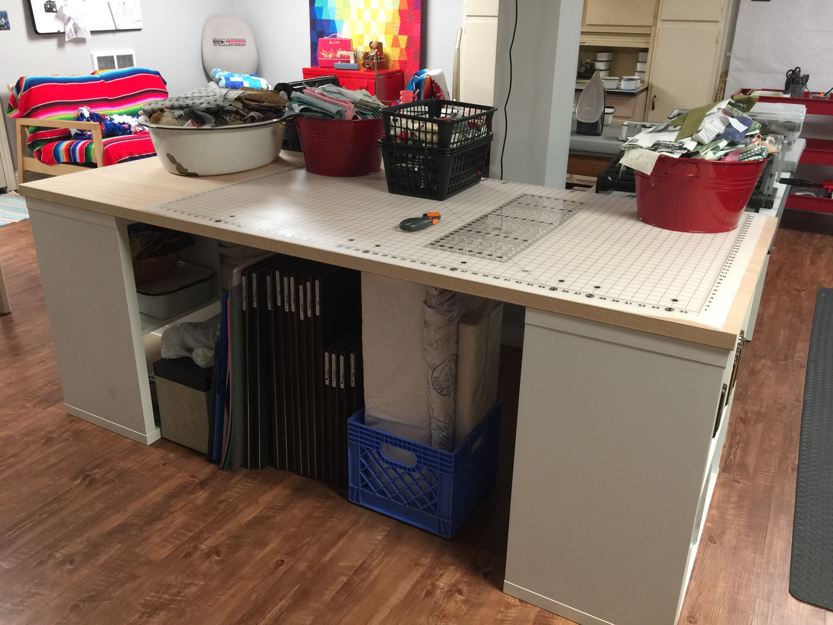 Love seeing how others organize! One of the top things on my list when we move in is a new large cutting mat! The door is a wonderful idea for a cutting table! What did you use underneath?