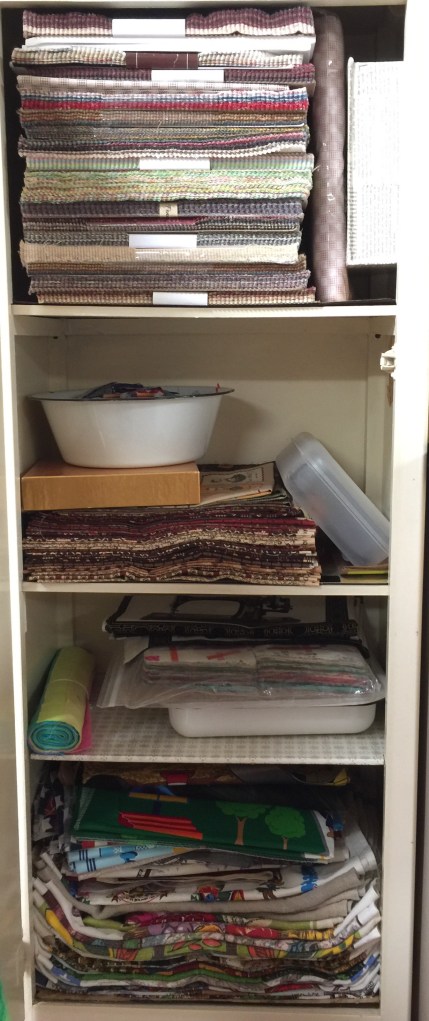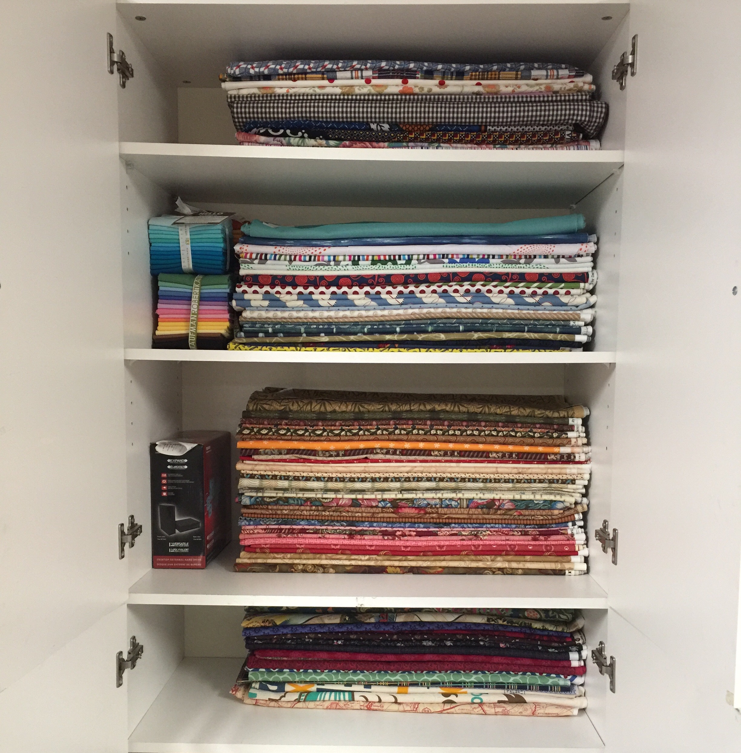 This is my layer cake stash along with some fat quarters and fabric panels.