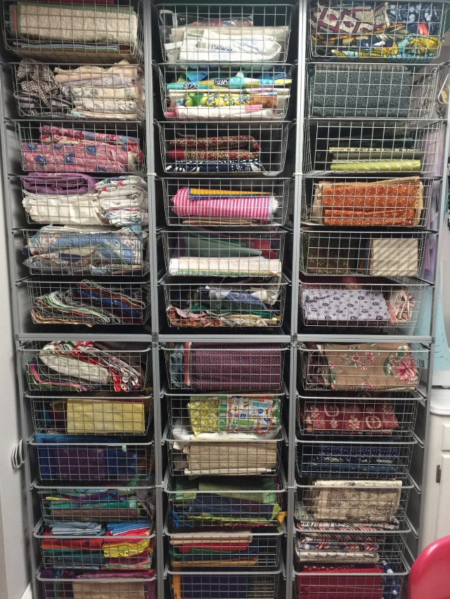 Peggy asked earlier this week about my stash. Here it is! Most of it is stored in these baskets from Ikea.