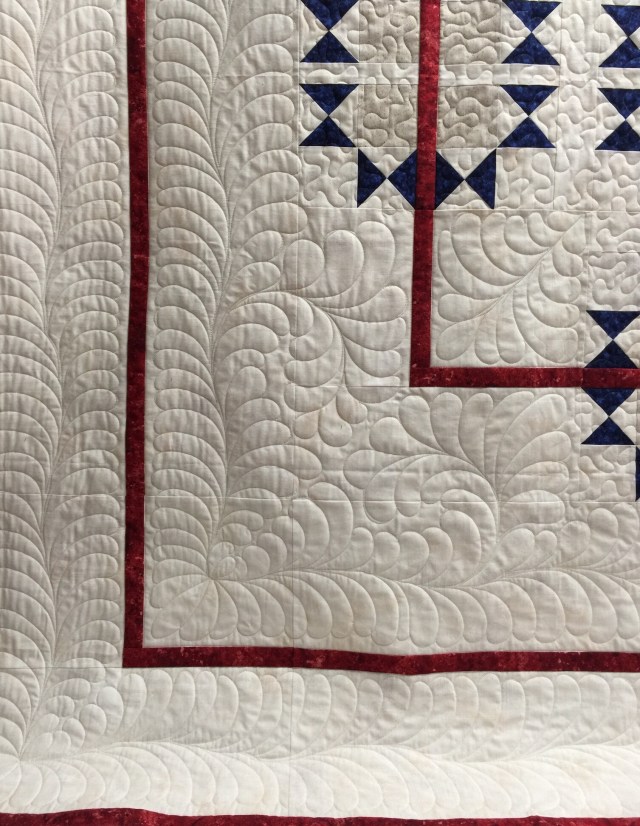 Beautiful quilting on both of these. I like your lovely feathers, too. You do so much wonderful work for the soldiers. Thank you.