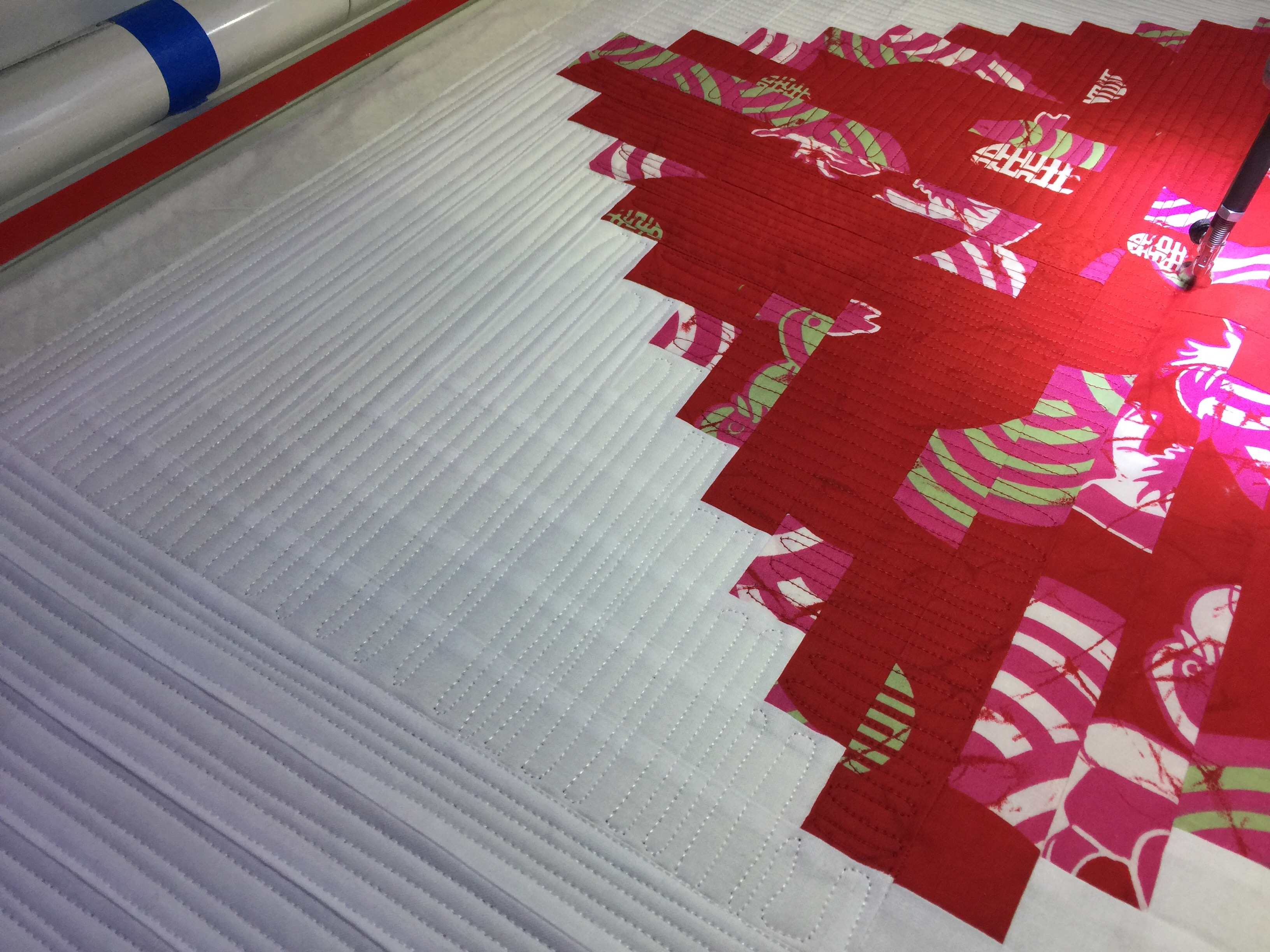 I loaded my log cabin quilt last week and finally started quilting it. I’m keeping it simple, but it is tight quilting.