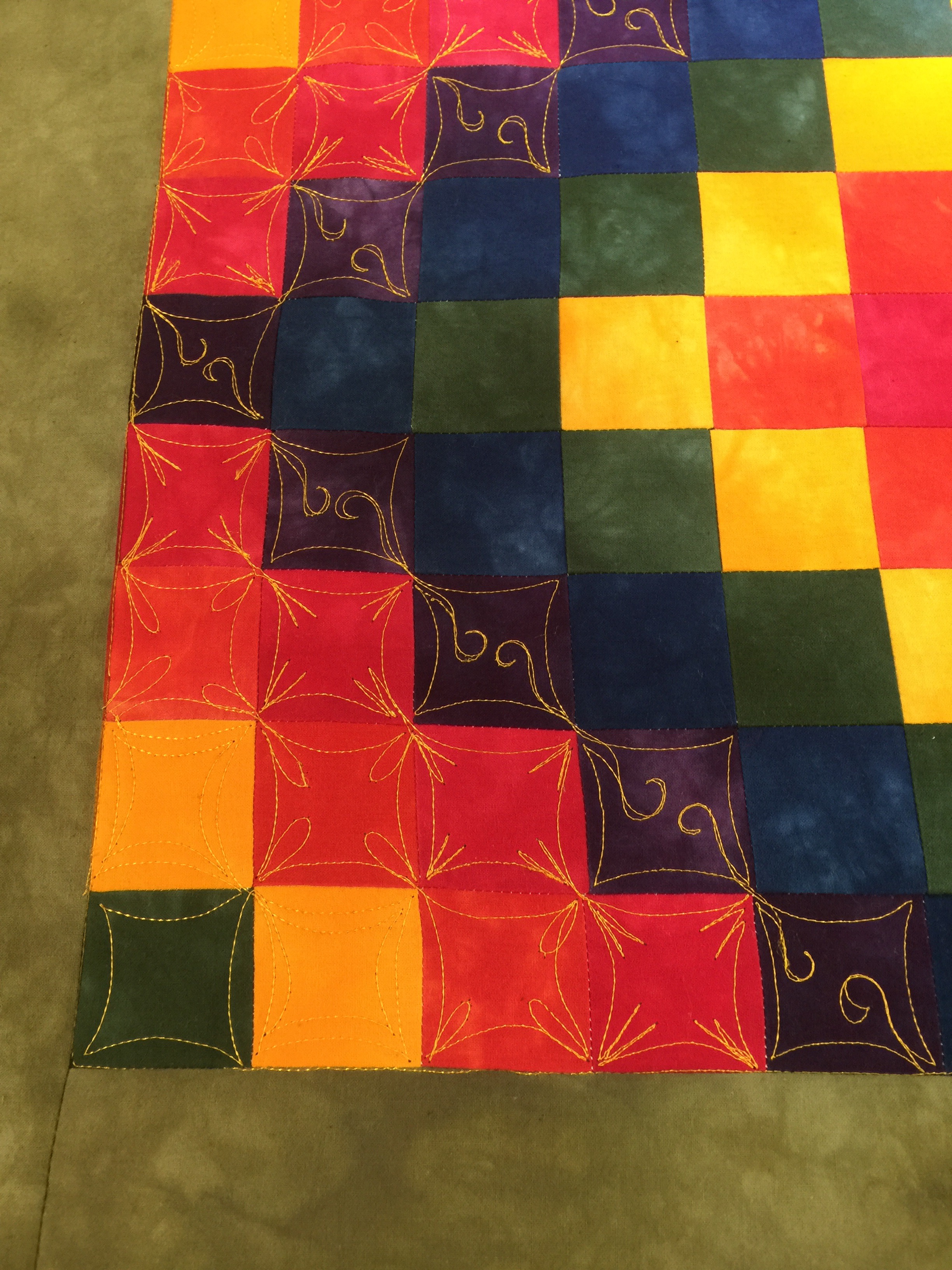 Then I moved to the long arm. Using a highly contrasting thread color was not the best idea, but I wanted you to see the stitching. The squares here finish at 1 1/2 inches.