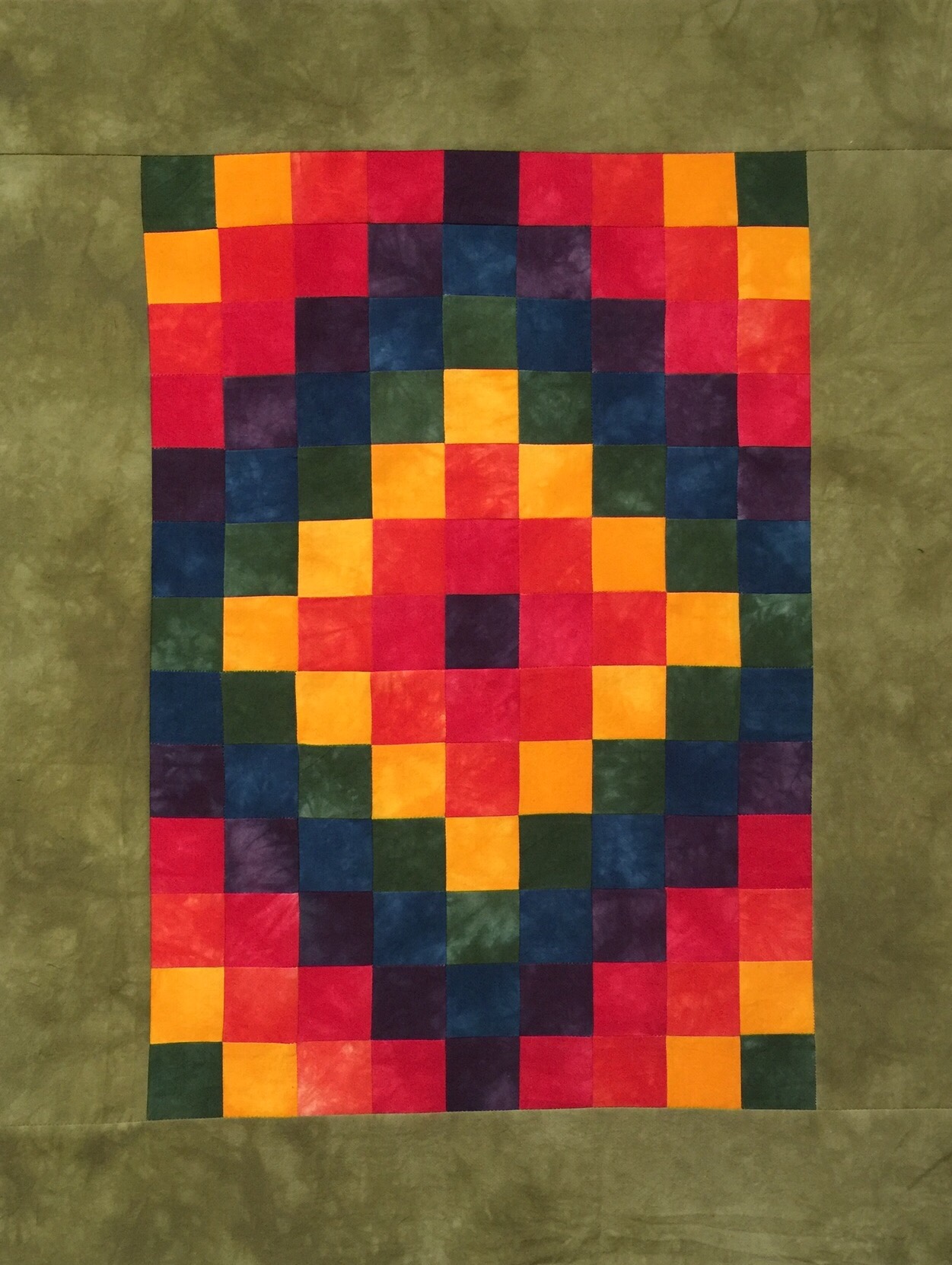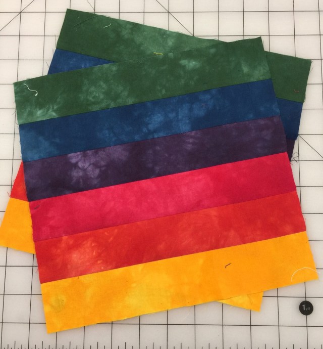It didn’t take at all long to piece together this small top out of my hand dyed fabric scraps.