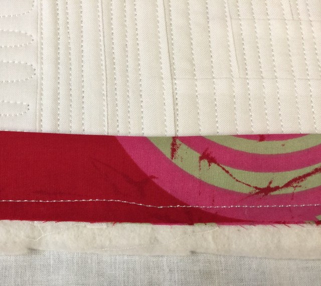 I’m nearing the finish line for my log cabin quilt. I know of several long armers that add the binding to the quilt before removing it from the frame. I decided I would give it a try with this quilt.