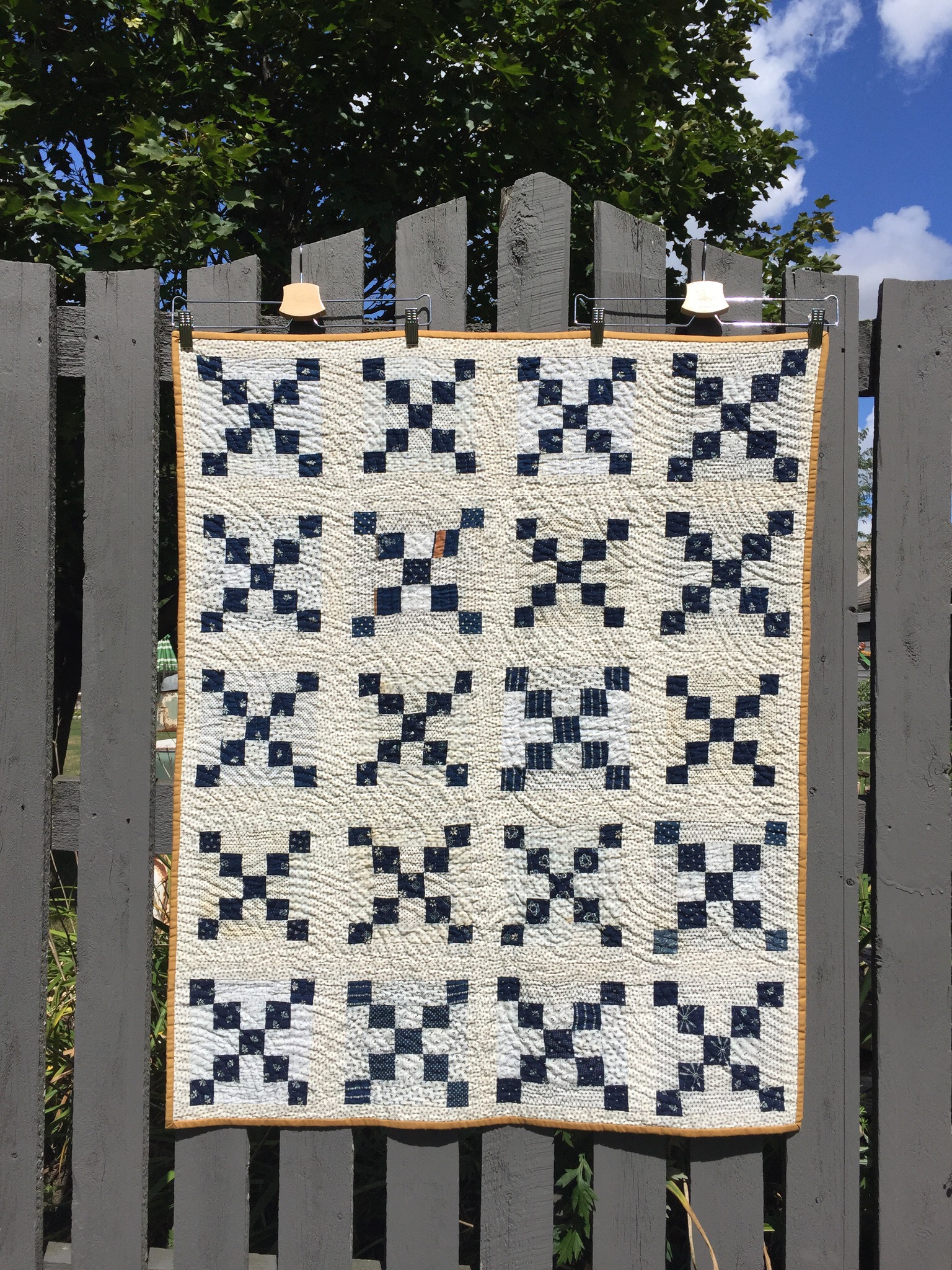 4. I really want to finish hand quilting the little indigo and white quilt shown above. Done!