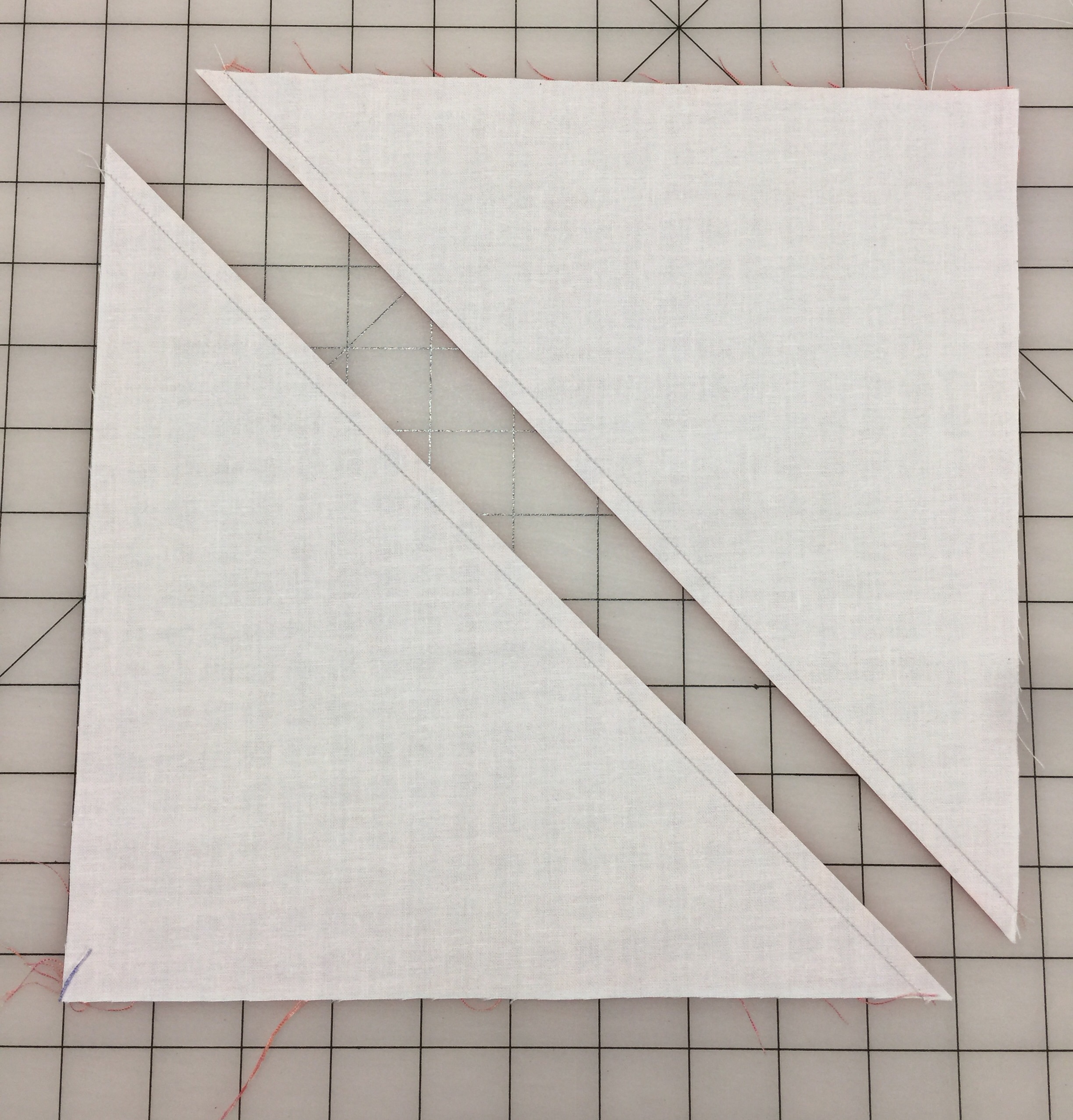 There are a million ways to make half square triangles. Well, maybe not a million, but a lot. Many involve trimming as a final step. I hate trimming. It’s one reason I love my Accuquilt die cutter. But every now and again, I find myself in a situation where trimming is necessary. So this is how I do it.