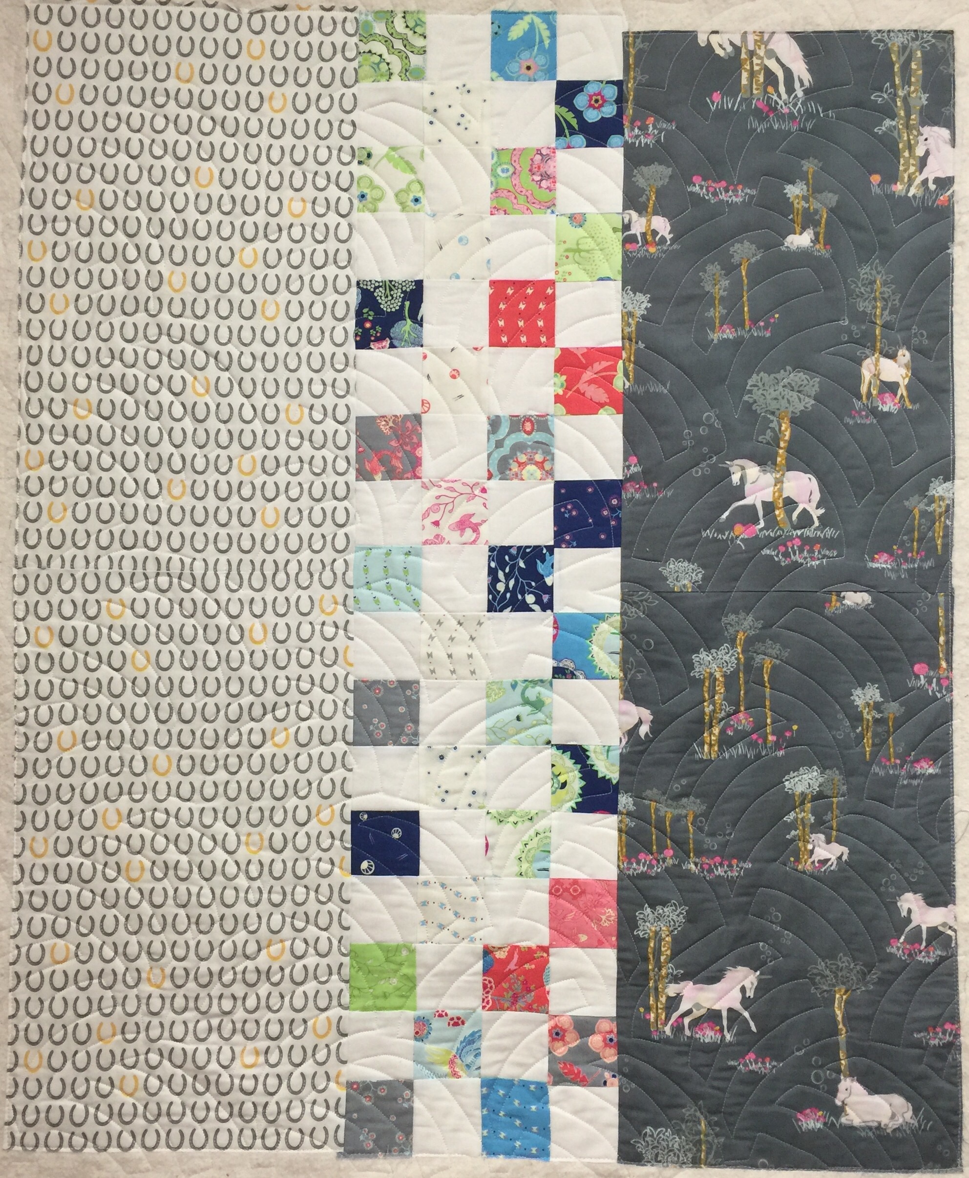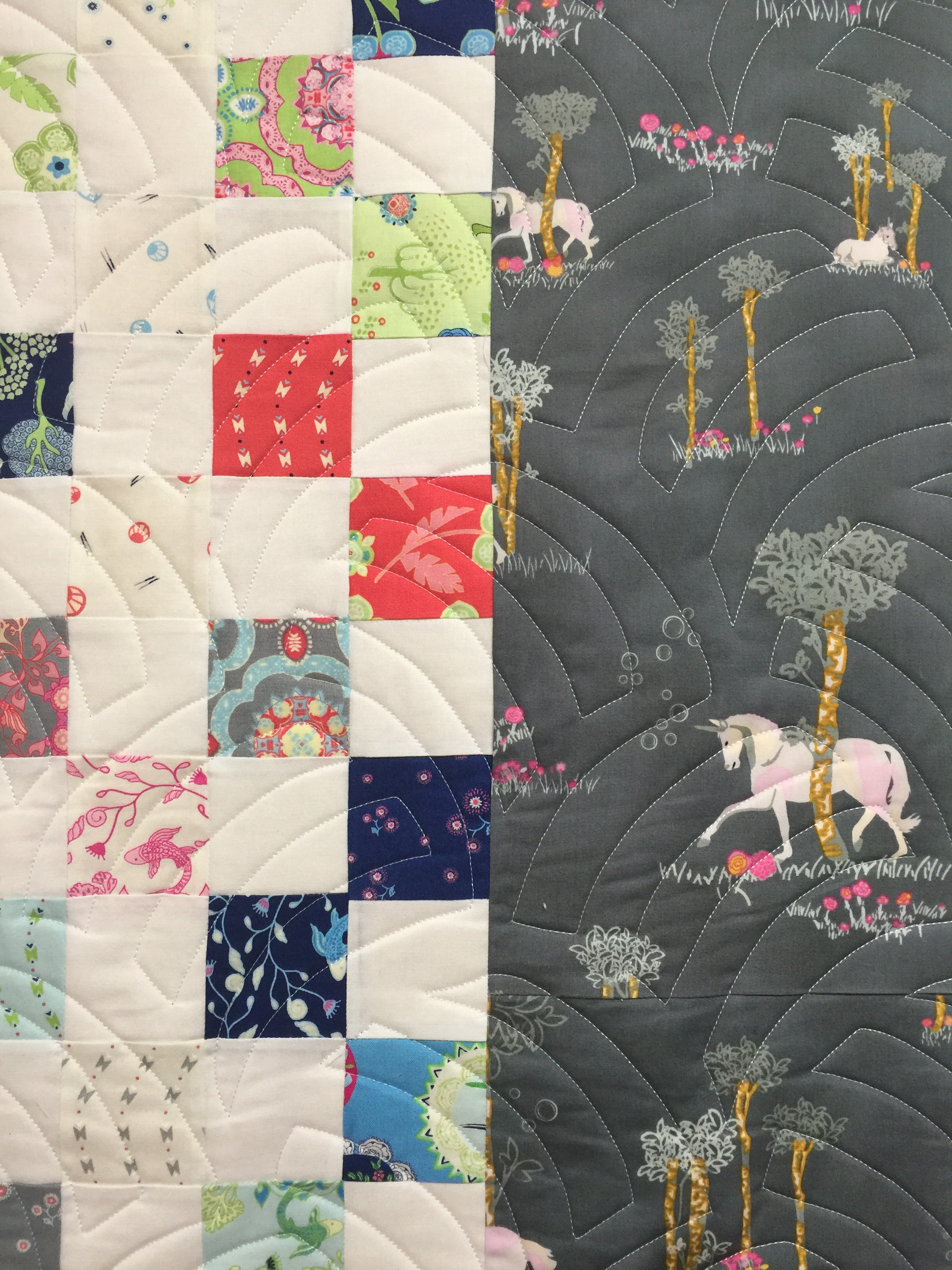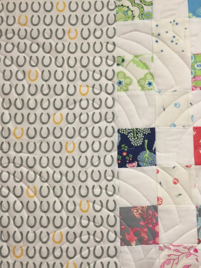 It’s a cute quilt! I love seeing the quilting from the back, I do love the pink backing. Hugs,