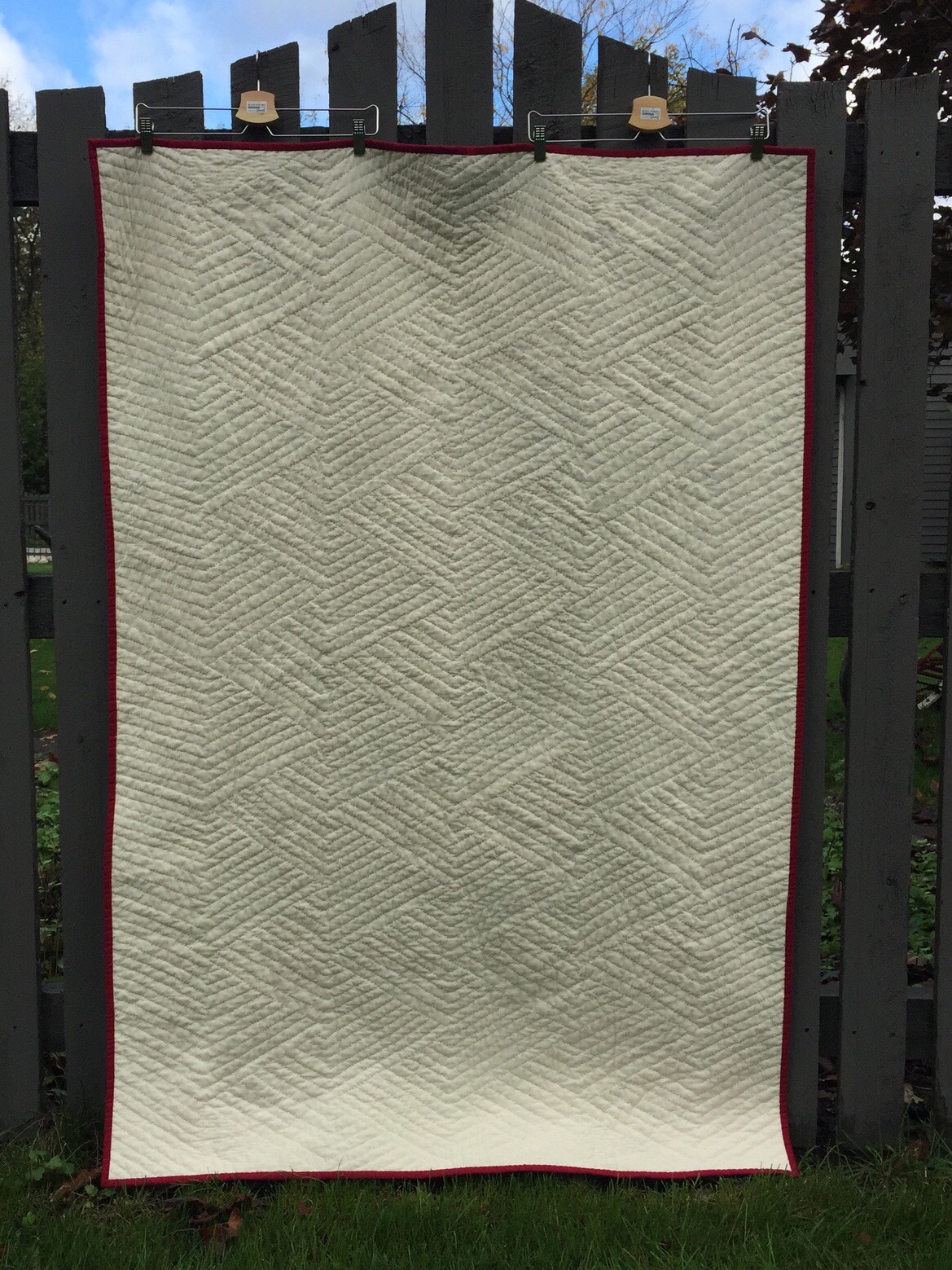 Well done. I can’t image hand quilting such a large project, especially without marking.