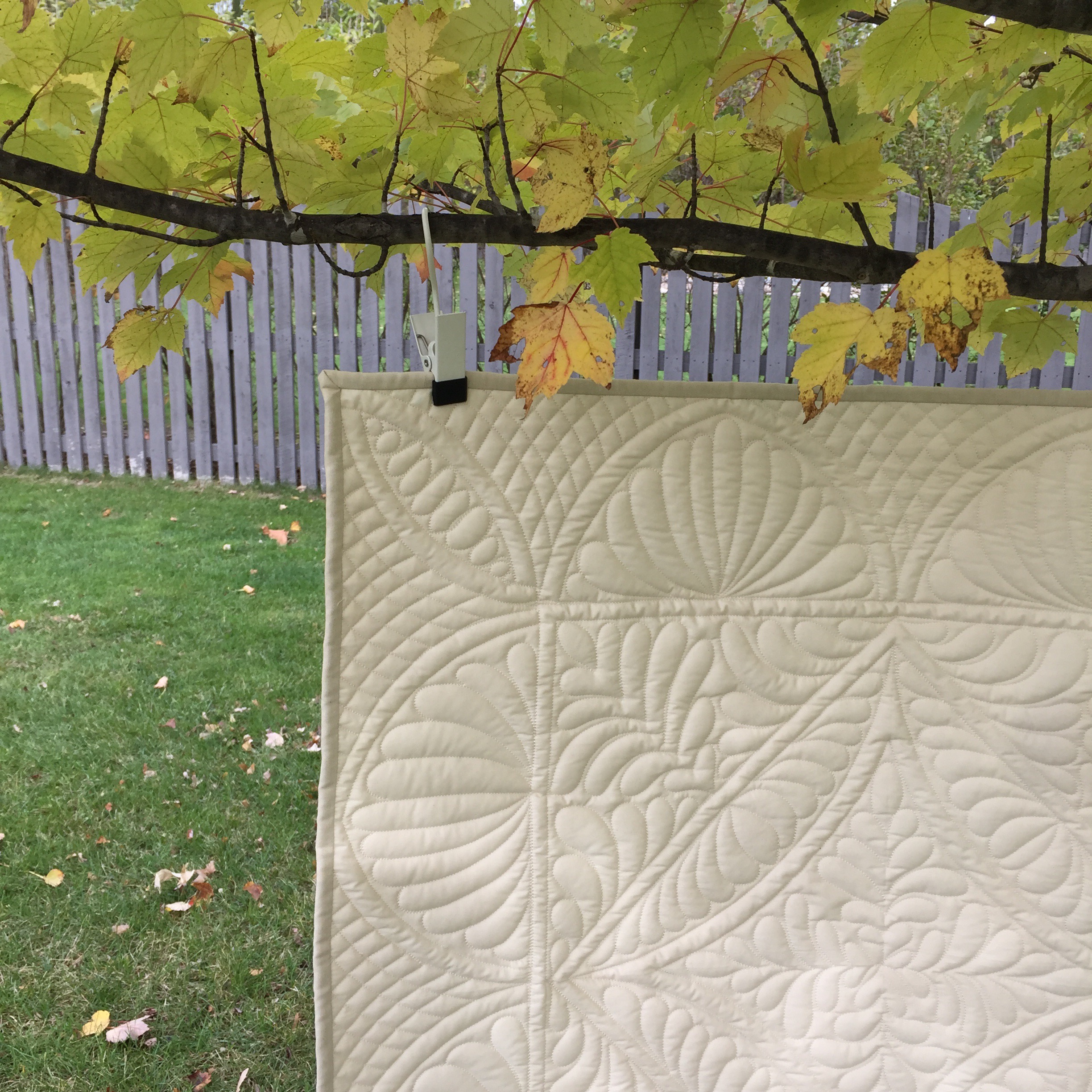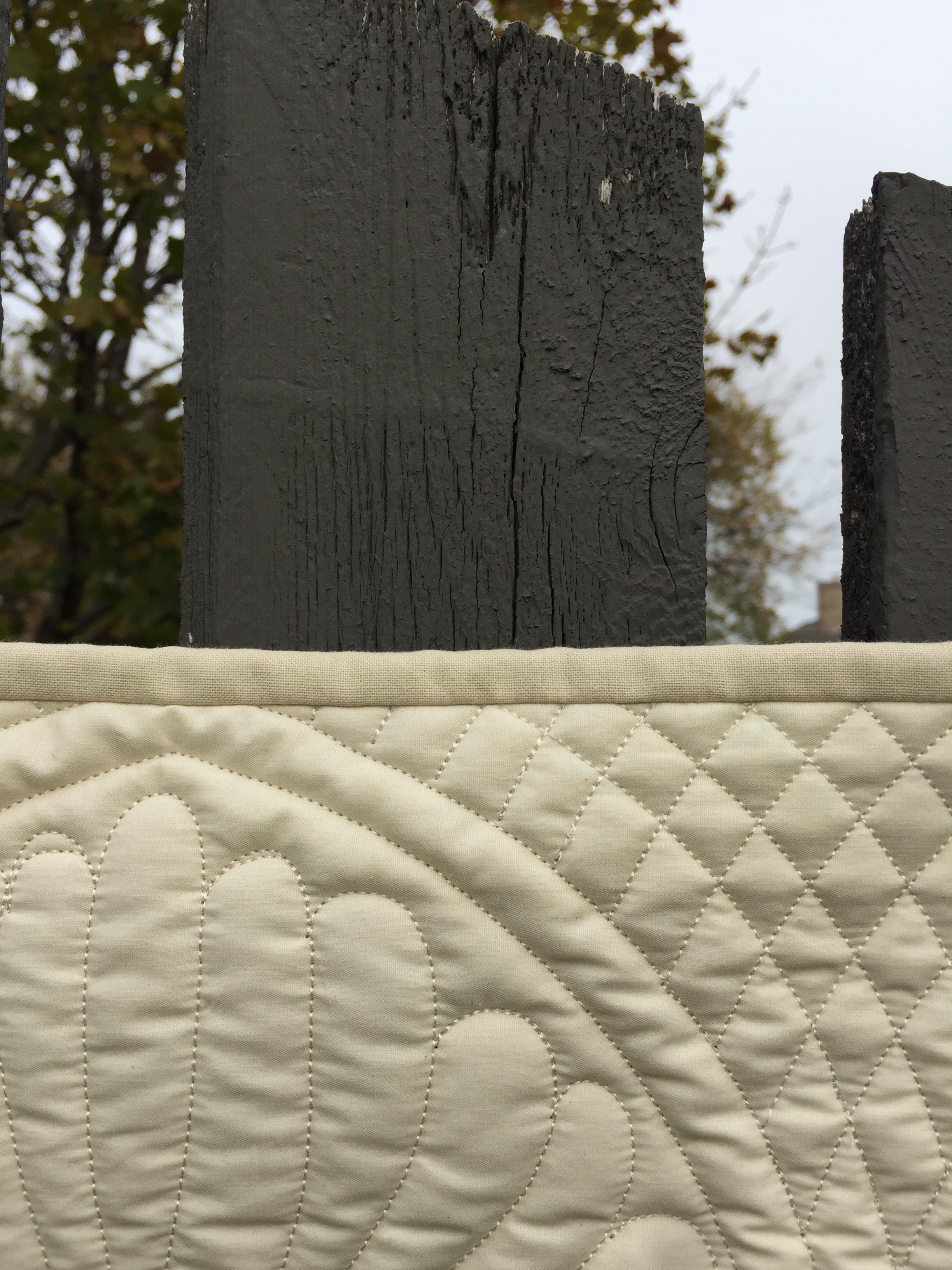 I used two layers of Hobbs 80/20 batting on this little quilt. I’m not sure if you can tell, but I used a slightly darker cream fabric for the binding.