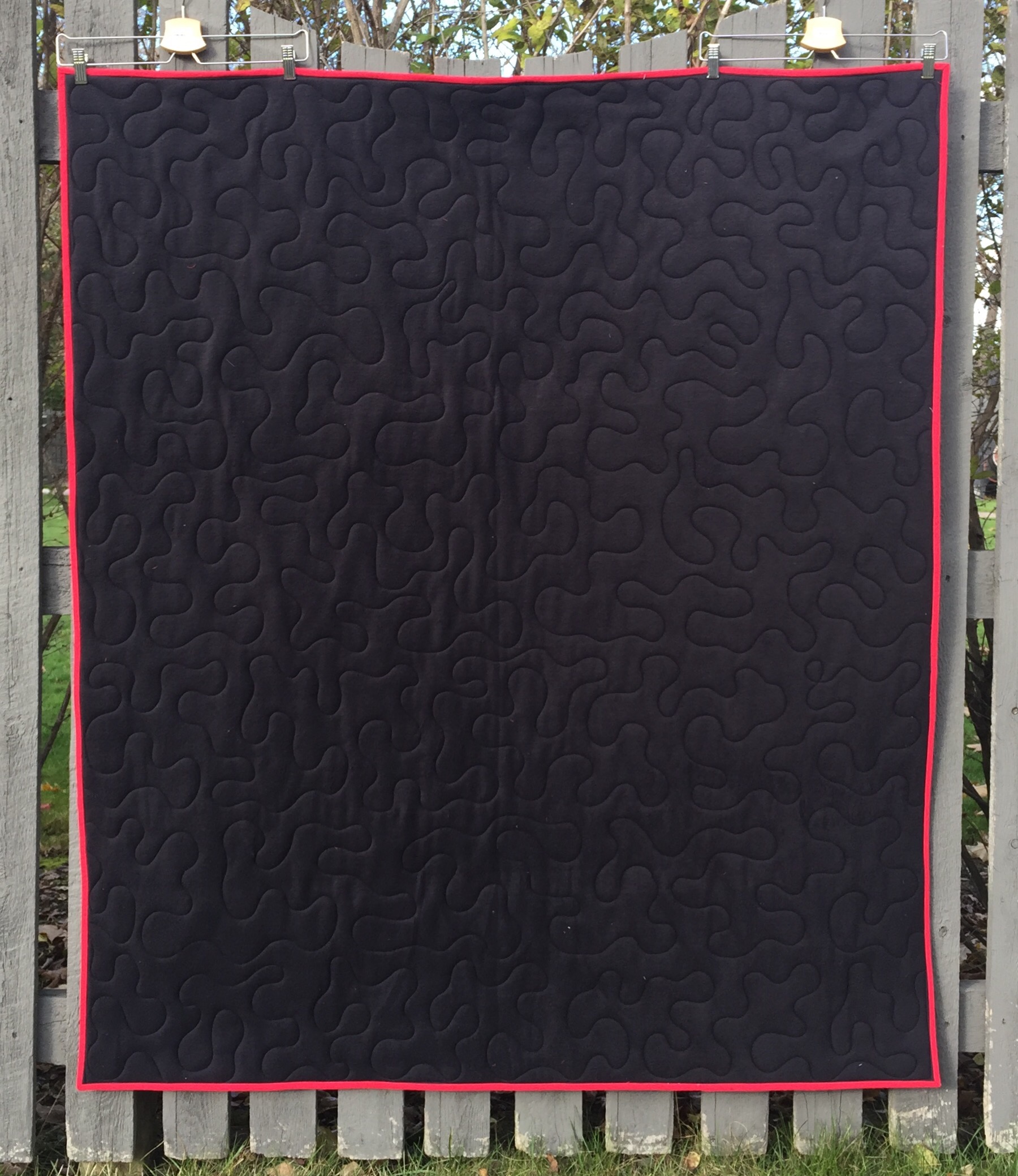 I quilted with a large meander. I used a low loft poly batt and polar fleece for the backing.