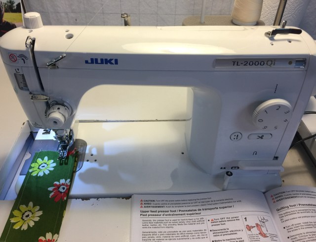 This is the Juki TL2000Qi. There is a newer model out, but it was more than I was willing to pay. My first project was attaching the binding on this quilt.