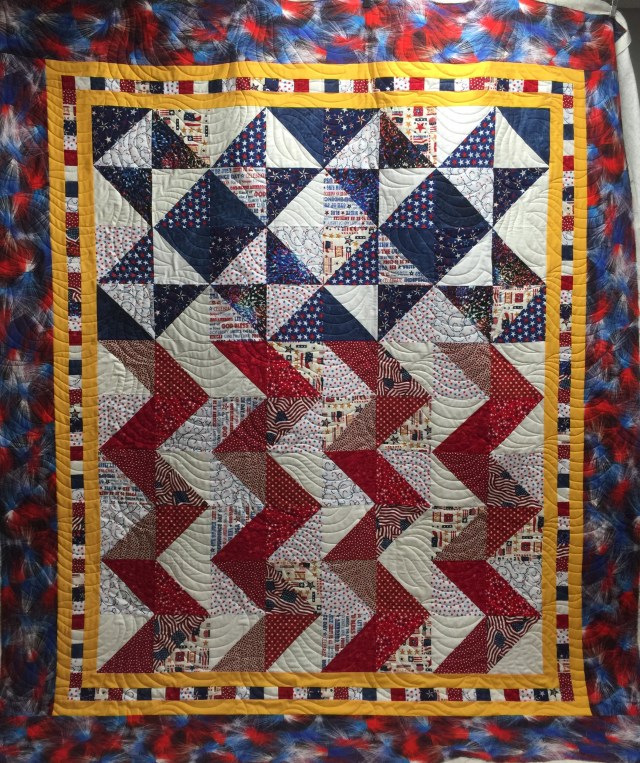 1. Quilt, bind, and add a hanging sleeve to this quilt for a customer. Done!