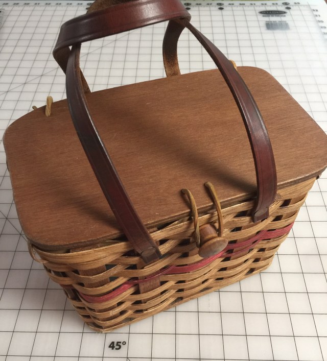 I used to knit a bit. But I haven’t done any more than a few dishcloths for the last several years. Now that I finished hand quilting that last little vintage top, I thought I would see if I can still do this. This is my carry around knitting basket.