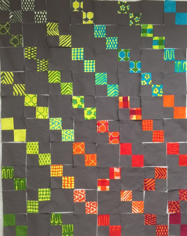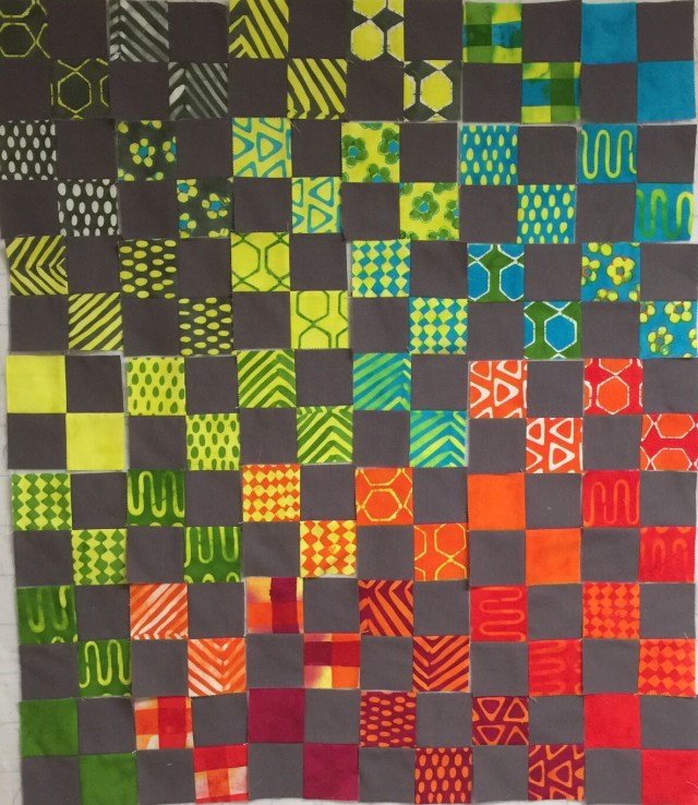 So I threw them up on the design wall. I wanted to shade the colors across the quilt.