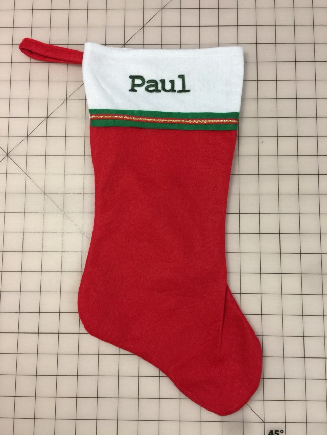 I just buy cheap stockings and machine embroider names. We are getting too many to hang on the fireplace!