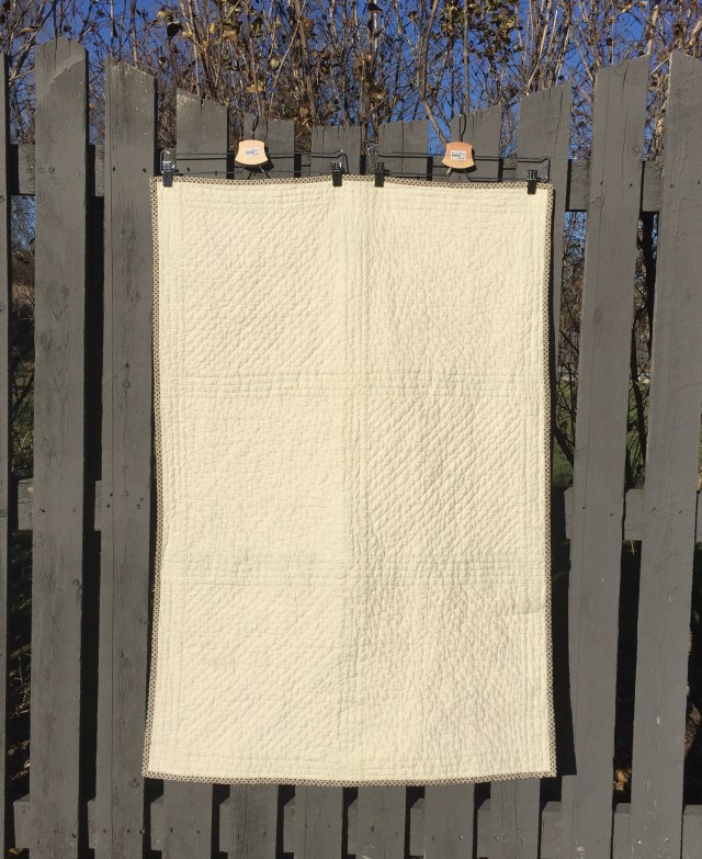 I finished hand quilting this vintage Broken Dishes crib quilt top.