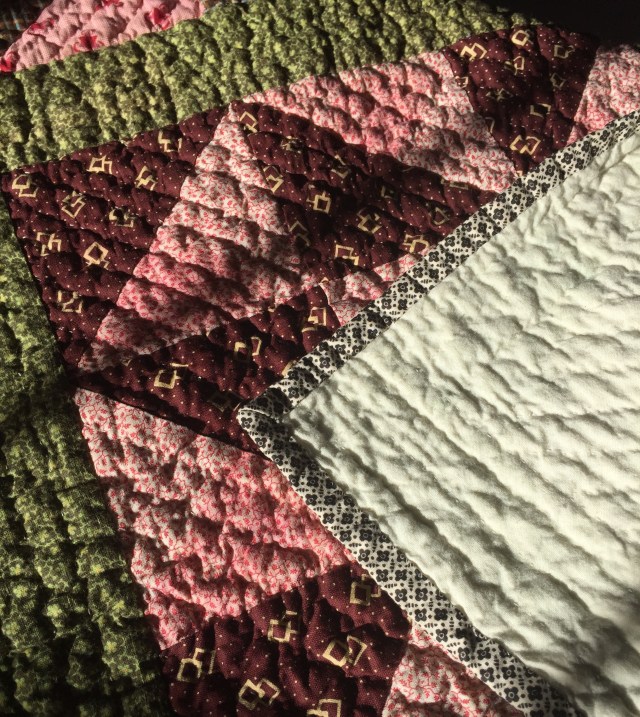 Perfect wrinkling for a vintage quilt. 🙂 I’m impressed with getting six quilts hand quilted in the year!