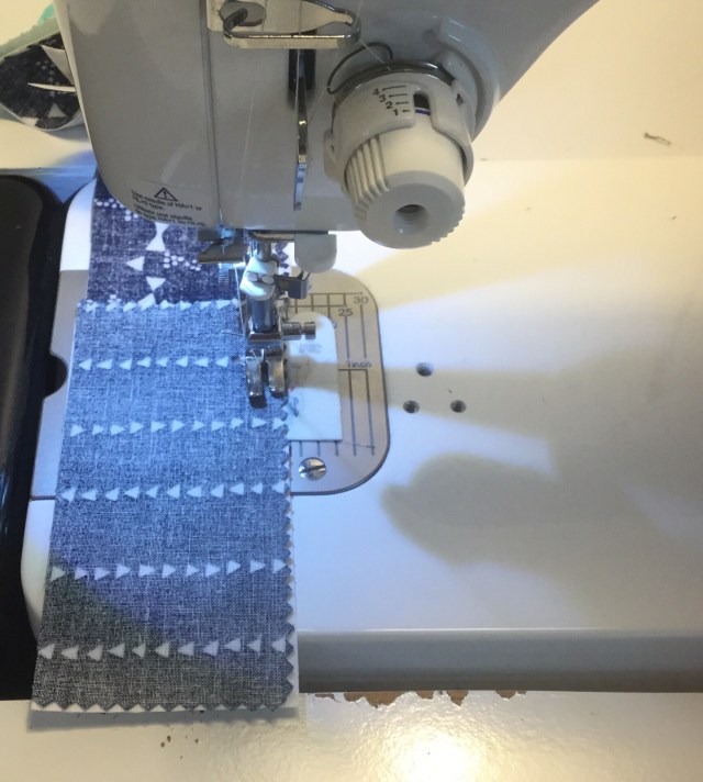 Time to sew! I match up one background piece and one print piece and feed them through.