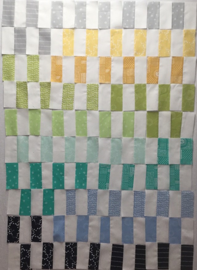 These blocks will measure 4 by 4 1/2 inches when sewn together. Time to throw them up on the design wall and play!