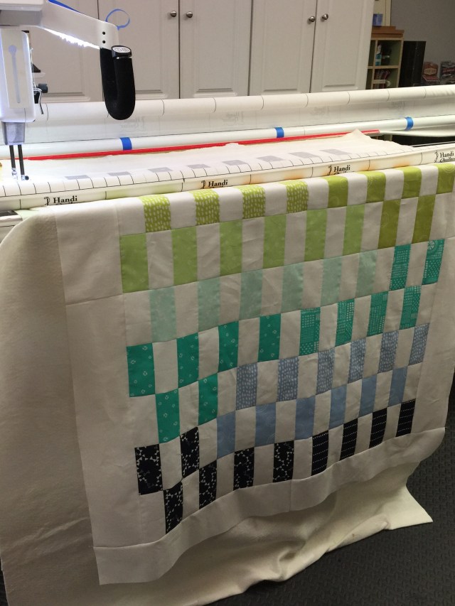 I used this new pantograph to quilt it. Once I started, I decided I wasn’t in love with it. But that’s one of the great things about baby quilts, they are small!