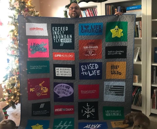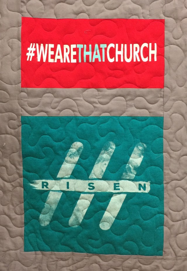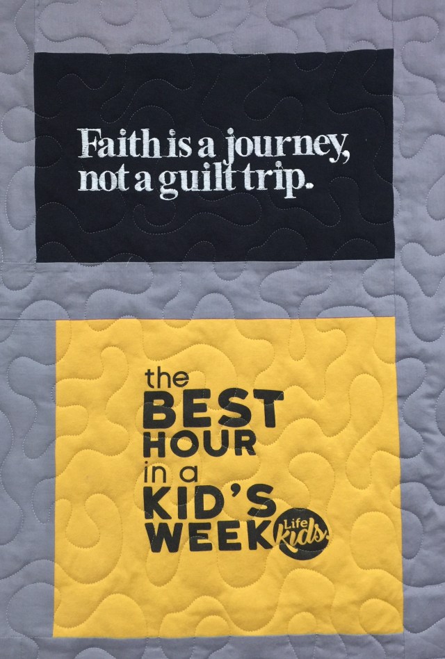 Not only a fun t-shirt quilt, but the words are so inspiring. It will be well used, I think, by the look on his face. Great job, Katy! If we’re ever in your neck of the woods, I’d enjoy visiting your church. Looks like a great place!