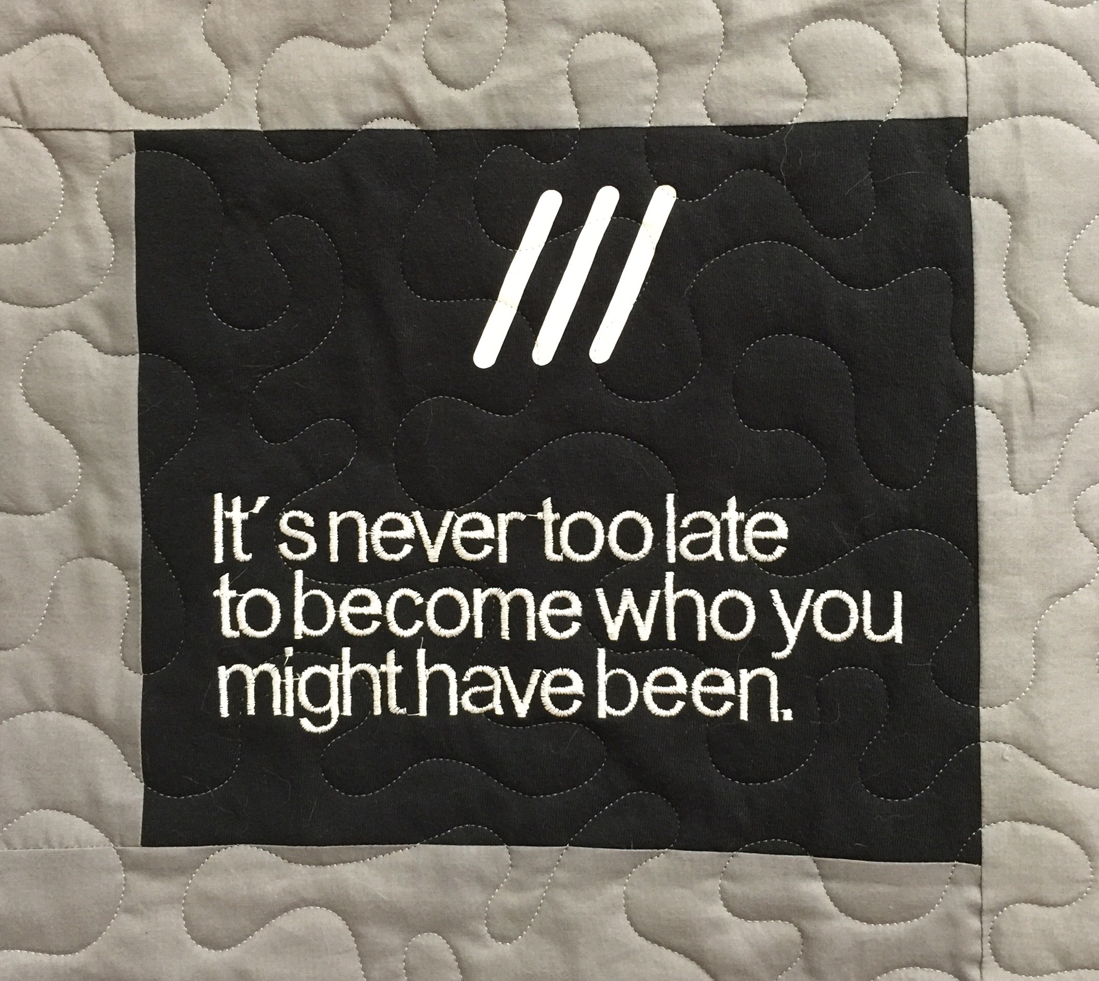 That’s a really cool Tshirt quilt. The embroidered maxims add so much to it!