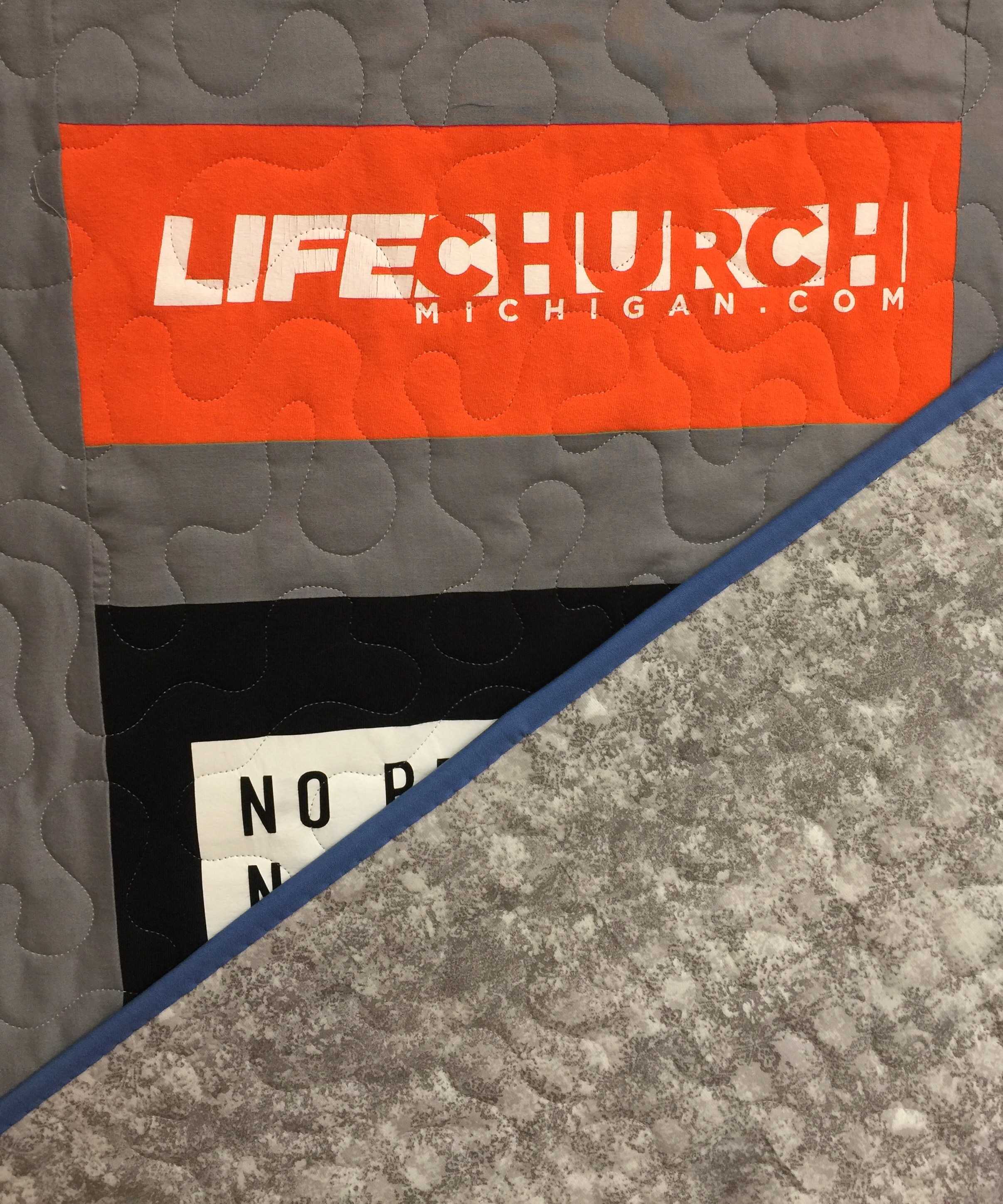 Not only a fun t-shirt quilt, but the words are so inspiring. It will be well used, I think, by the look on his face. Great job, Katy! If we’re ever in your neck of the woods, I’d enjoy visiting your church. Looks like a great place!