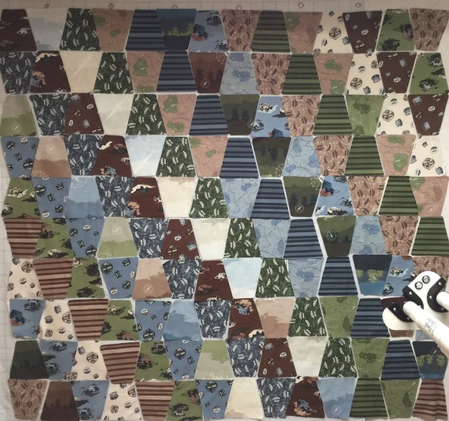 I’m not happy with the layout yet, so I’ll keep tweaking it. I had purchased several yards of this border print for the backing, but I’m thinking now that I will use it for borders.