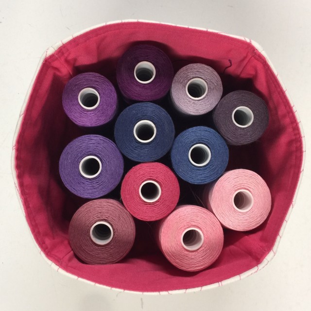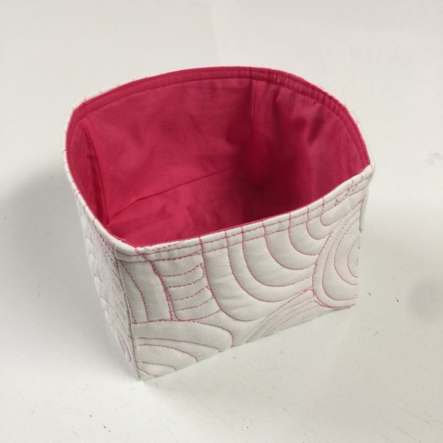 The pattern actually has directions for six different sized baskets. I decided to make the smallest size and to use a practice piece of machine quilting I had laying around.