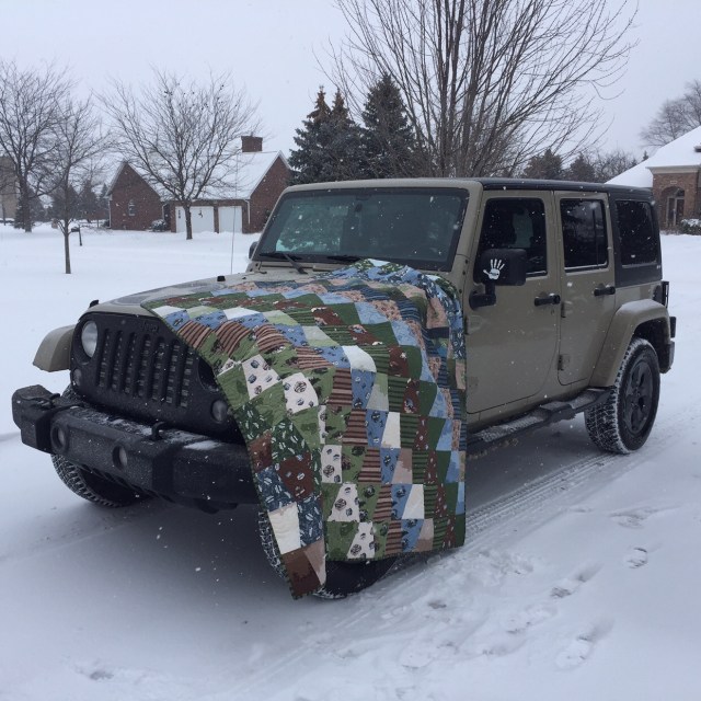 I’ve been enjoying using this quilt inside, but eventually it will stay in the Jeep.