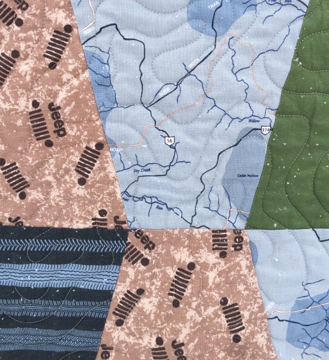 Every single choice you made about this quilt is PERFECT!! I love the topographical looking quilting. What Jeep lover would NOT love having this cozy Jeepy quilt in their Jeep. NONE!!