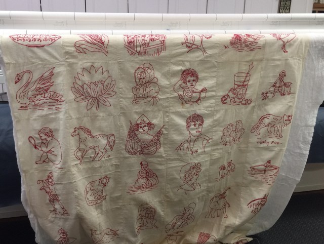 What a beautiful redwork quilt top! You are so lucky to have come into this beauty! It will be gorgeous when it’s finished and then your friend will want it back, lol.