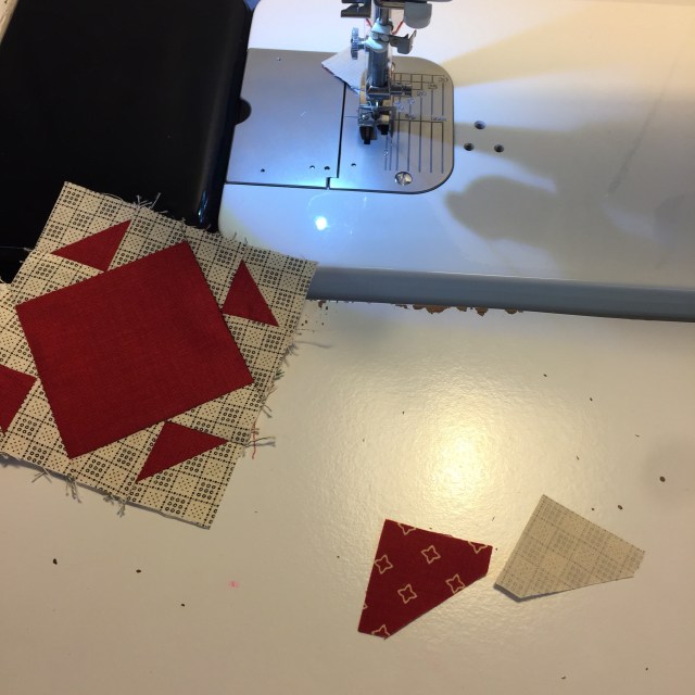 Very cute. I did the same thing last night — was going to prep blocks and then ended up sewing them together. It was hard to get up this morning. LOL