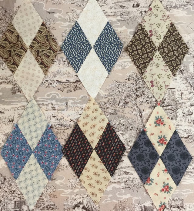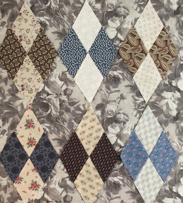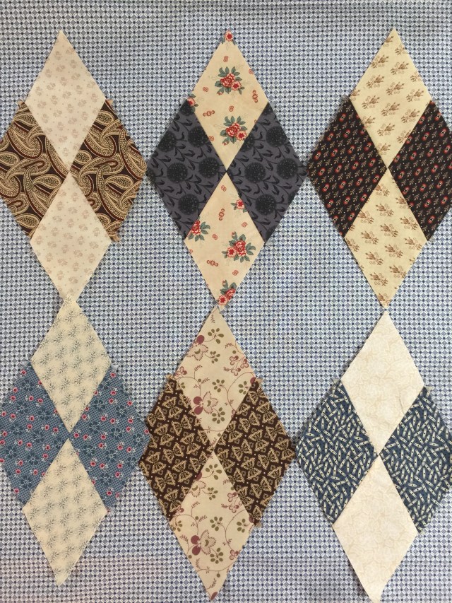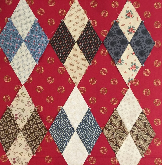 Not that you need my opinion, but I agree with you about the green. The red is another possibility. It all depends on the look that you are going after. I think I favor the green because it doesn’t overpower the pieced diamonds. With the red you see the red diamonds before you see the pieced diamonds.