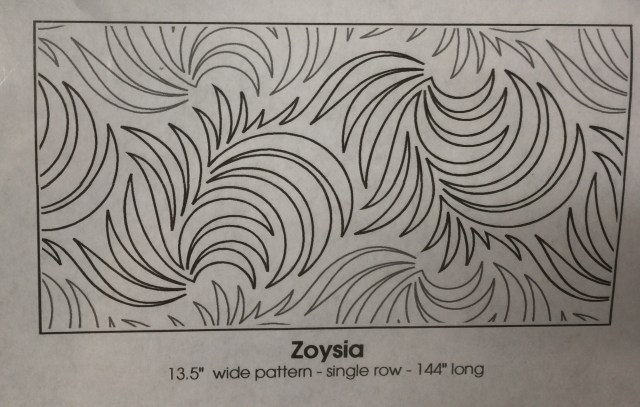 This is the panto I’m using. It is from Urban Elementz . My machine has an 18 inch throat and this panto is a bit too big. It can be done, but it takes a bit of finagling. I wouldn’t use it on a quilt any bigger than twin size. I need to remember that I’m much happier with pantos 12 inches and less with my machine.