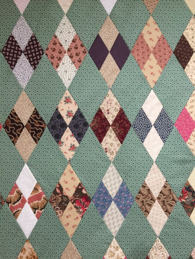 LOVE the green fabric with the diamonds! And your scrappy trips is beautiful! That one’s on my to-do list, but my fabrics aren’t as pretty…