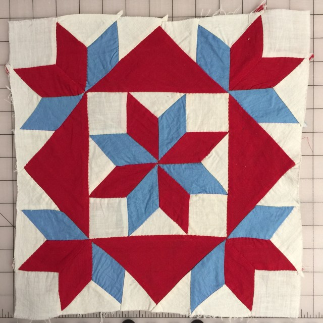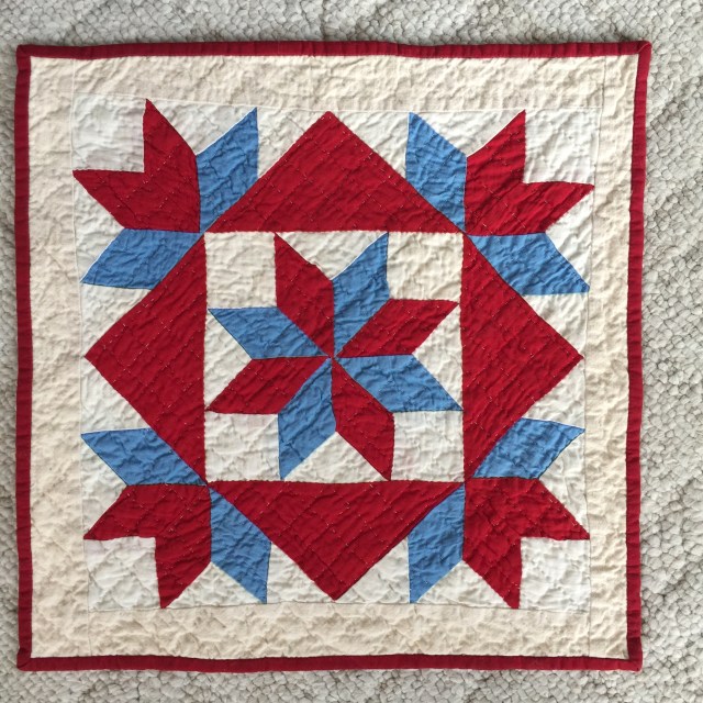 I’ve finished making a little quilt out of this vintage star block.