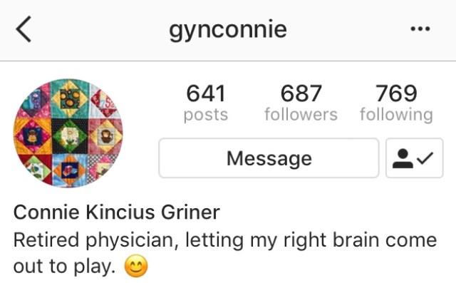 Isn’t this the best? I love the details in the quilting! It’s the kind of quilt that I look at and think, I wish I had made that! You can see more of Connie’s amazing quilts on Instagram. Here is her info so you can find and follow her.