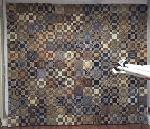 At this point, the top measures 78 by 90 inches. I had 9 blocks leftover. I hate having leftover blocks! So I decided to make enough to add one row to the width. I don’t like skimpy bed quilts either!