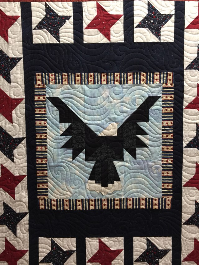 Beautiful quilt. Excellent choice on the panto–looks windy to me. 🙂