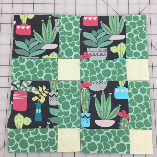 One pass through the die cutter and my block is neatly sliced into four equal pieces.