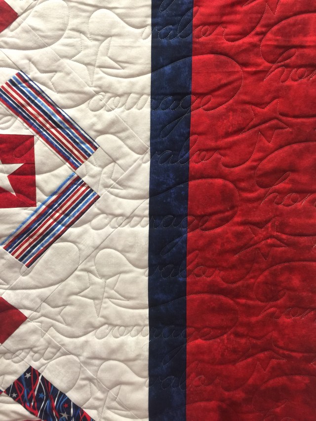I often have people ask me about patterns when I show these Quilts of Valor. I’d love to help, but since I haven’t made the tops, I don’t have any pattern info. Sorry I can’t help with pattern names!