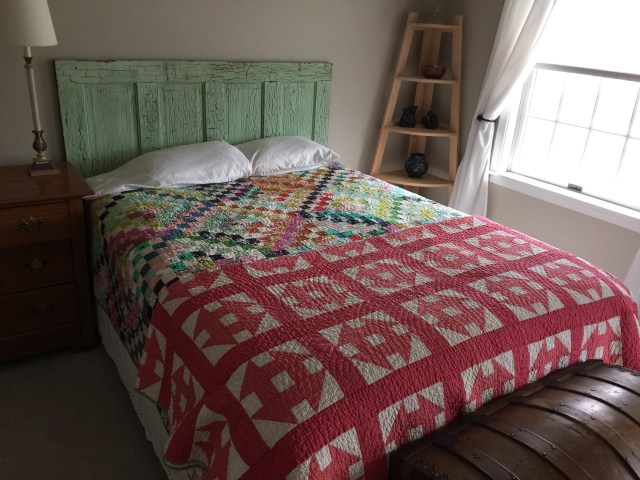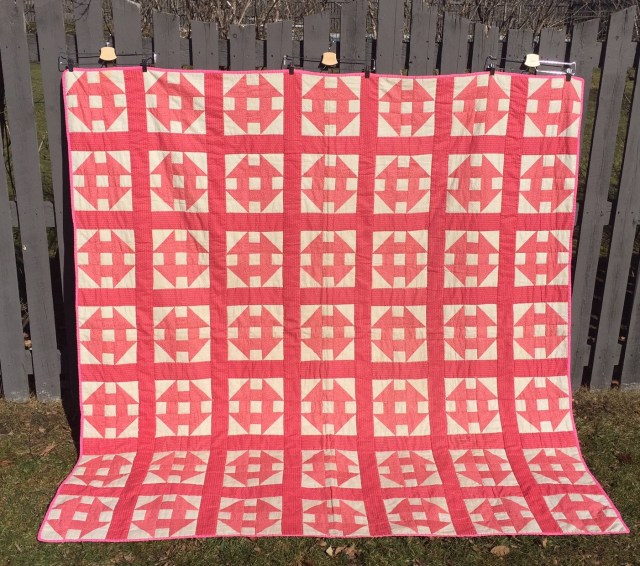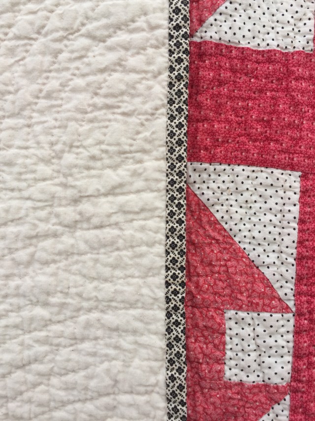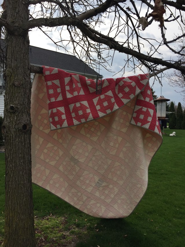 A lovely finish for an antique quilt. It is amazing how much dust and grim accumulate over the years….not just on quilts, but stash fabric, clothes, shoes, etc.