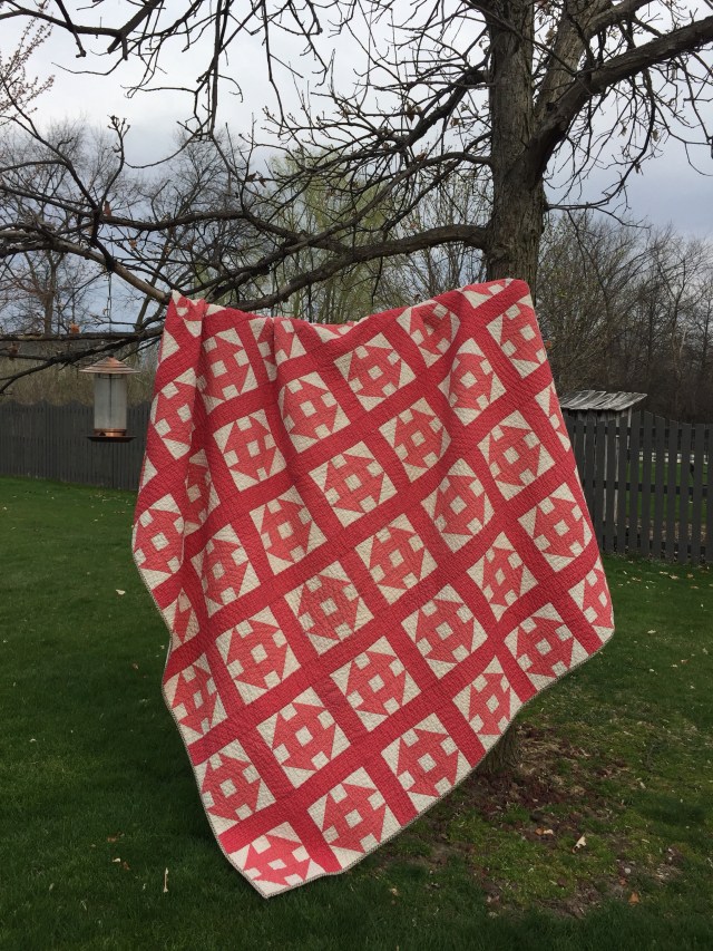 The binding is a vintage fabric from my great aunt’s stash. She would have been 101 this year!