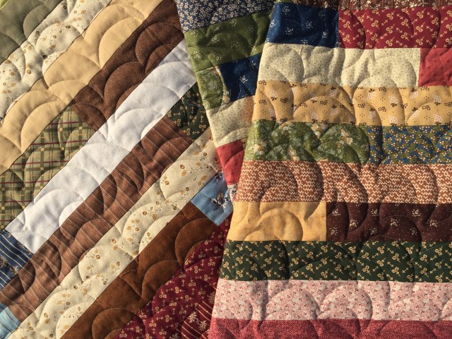 What a cozy, comfy quilt! I really like that half-moon-ish quilting motif. And I’d say you’ve nailed the machine binding 🙂