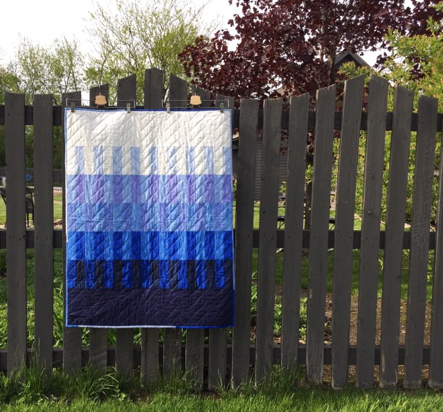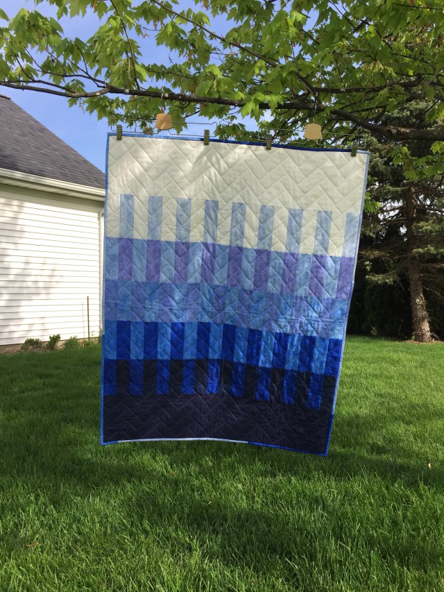 This baby quilt is done and it has already found a new home! It is really quite simple, but I love the light to dark effect.