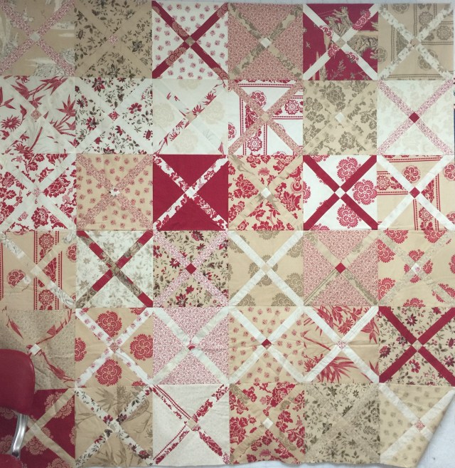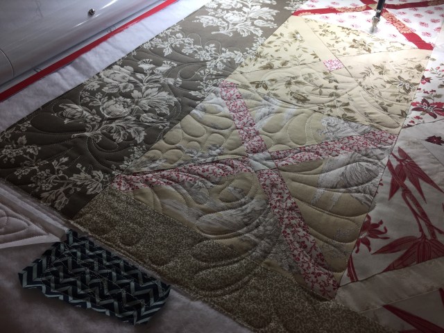Such muted, lovely colors and the quilting is really going to make the quilt shine! Nice donation quilt, Katy!