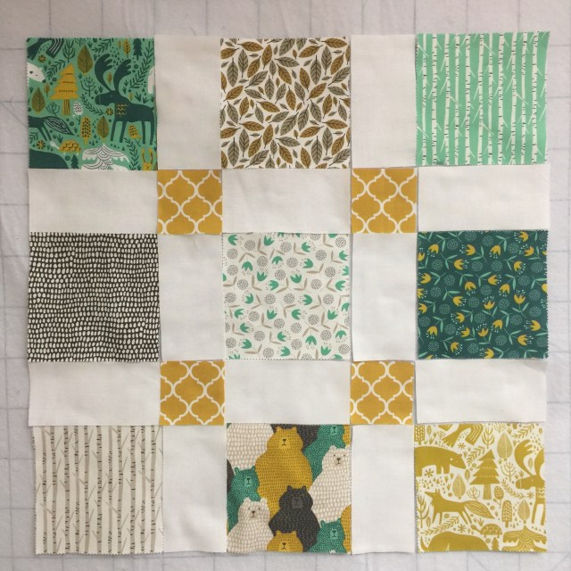 Love the colors of the fabrics! Looking forward to seeing the finished baby quilt!