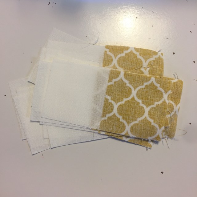 First, add a sashing piece to each square of a charm pack. This should take 15-20 minutes at most.